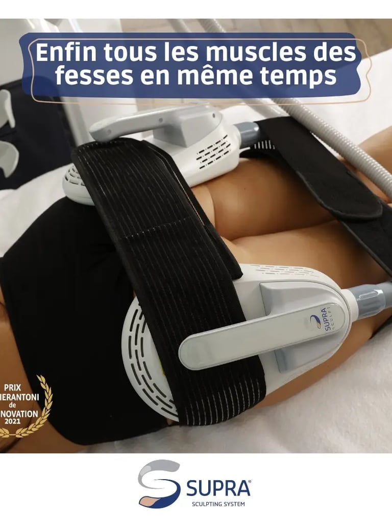 SUPRA SCULPT réalise 20 000 contractions musculaires en 30 minute .Ce n’est pas douloureux L’appareil vous permet d'obtenir un maximum de résultats ,fessiers galbés et abdos ciselés !!